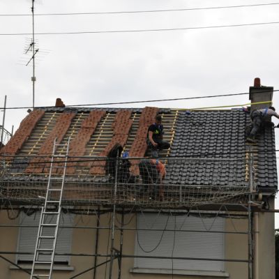 Nous intervenons très souvent lors de tempête pour des réparations ponctuelles, de mise hors d’eau, de mise en sécurité, remise en place de tuiles.