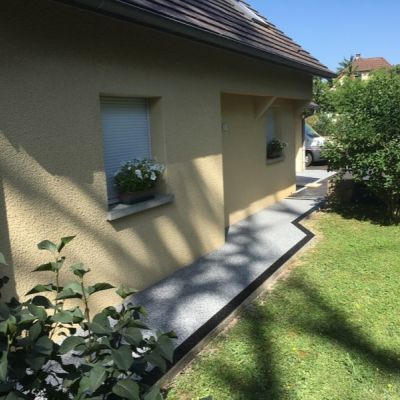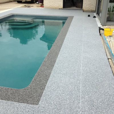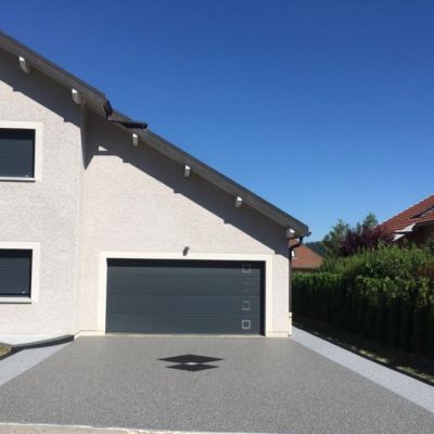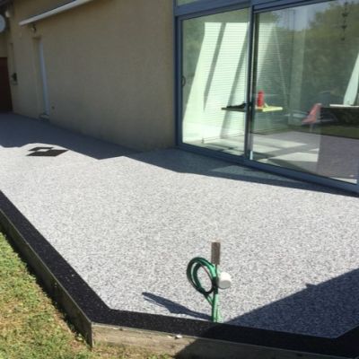 La résine gravillonnée est un revêtement de sol extérieur qui permet de rénover et protéger des surfaces en enrobé ou en béton. Il s’agit d’une résine méthacrylate fluide composée d’agrégats ou granulats (gravier naturel) et de résine. Elle permet de créer une couverture de sol lisse et unie, à la fois esthétique et très résistante au trafic et à l’abrasion (aménagements routiers et urbains, cheminements PMR, trottoirs, allée de jardin, cours).