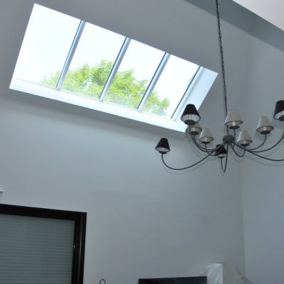 En aluminium de chez Schûco, de différentes dimensions allant de 1m à 5m de long et de 1m à 2.5m de large ou avec vélux
